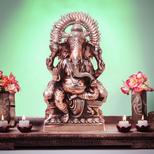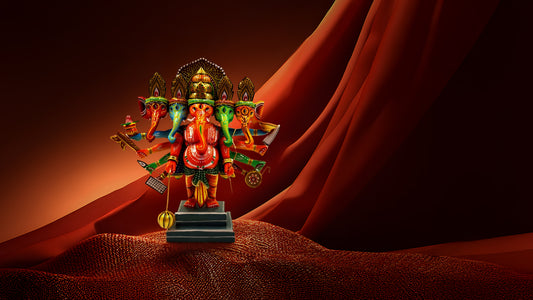 Hand-Painted Wooden Panchmukhi Lord Ganesha Moorti