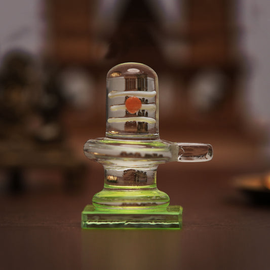 Glass Shivling – Pure Crystal Shivlingam ( Saffron, Green & Blue colors )