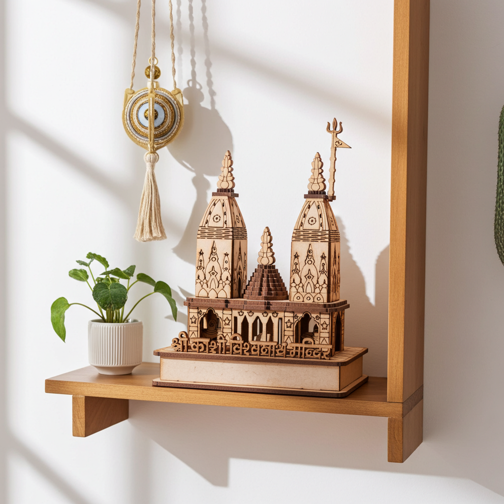 श्री काशी विश्वनाथ मंदिर की इस सूक्ष्म रूप से हस्तनिर्मित लकड़ी की प्रतिकृति के साथ श्री काशी विश्वनाथ की दिव्य आभा को अपने घर में लाएँ। सटीकता और श्रद्धा से निर्मित, यह 3डी मॉडल भारत के सबसे पवित्र शिव मंदिरों में से एक की पवित्र वास्तुकला और आध्यात्मिक सार को प्रतिबिंबित करता है। यह आपके घर के मंदिर, कार्यस्थल के लिए एक आदर्श केंद्रबिंदु है, या विरासत के एक पवित्र उपहार के रूप में भी उपयुक्त है।