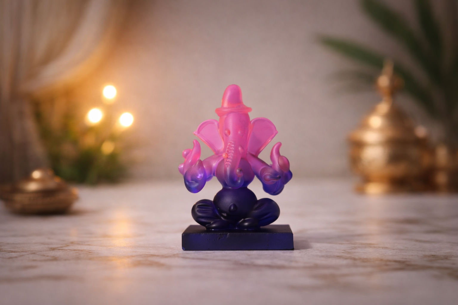 Compact yet premium, this idol measures 8 cm × 5 cm and weighs 100 grams, making it perfect for home, office, car dashboard, or gifting. Available in three vibrant variants—Magenta, Orange, and Tri-Color, it adds positivity and beauty to any space.