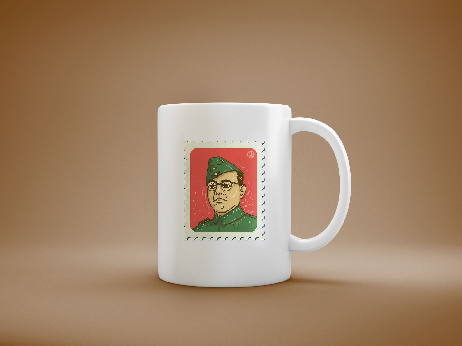 Sip your morning tea or coffee with pride in this beautifully printed ceramic mug, featuring a retro postage stamp design of Netaji Subhas Chandra Bose. The design captures his fearless personality and reminds you daily of the values he stood for — courage, determination, and patriotism.